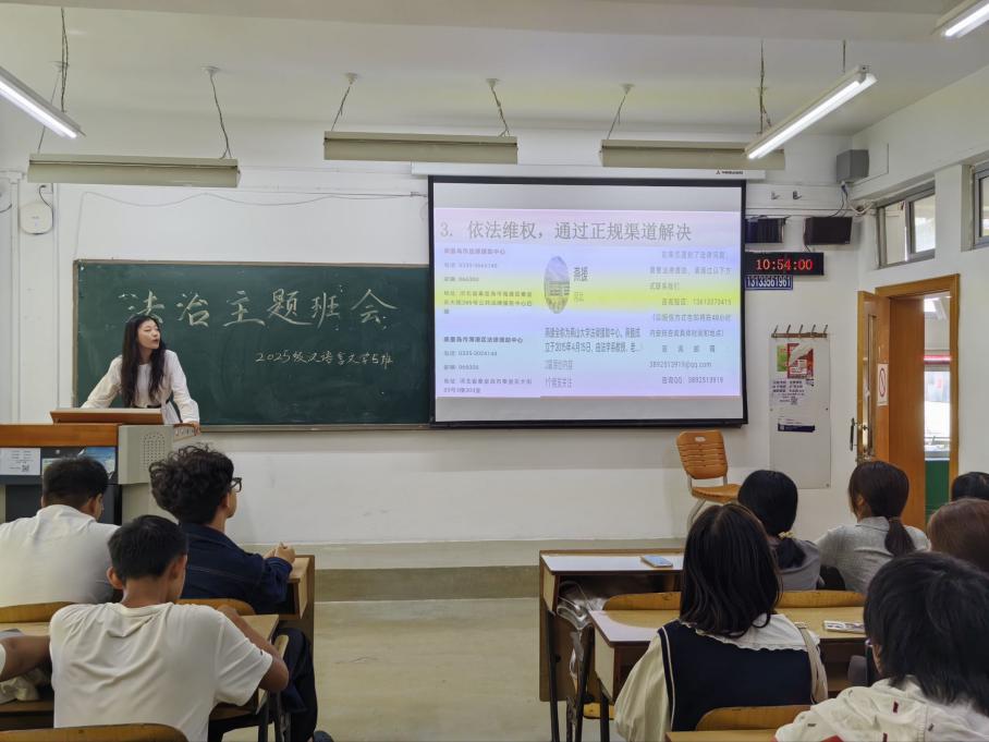 为深入落实河北省教育厅关于组织开展法治“开学第一课”通知要求,进一步夯实青年学生的法治思想根基、筑牢安全防范防线,全力营造浓厚的校园法治氛围,9月21日至9月24日,文法学院(公共管理学院)开展“弘扬法治精神 护航青春成长”法治“开学第一课”主题班会,将法治教育与学生成长需求紧密结合,让法治意识在青春校园落地生根。