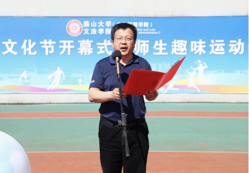 为深入贯彻落实体育强国战略,引导广大师生悦享运动快乐,以体育德、以体育智、以体育心,6月2日上午,文法学院(公共管理学院)在第二体育场举办体育文化节开幕式暨师生趣味运动会。校党委常委、副校长蔡星周,学生工作处处长薛传佳,校团委书记段磊,学院党委书记杨健民,院长丛鑫,副处级辅导员徐进出席活动。开幕式由学院党委副书记张玉华主持。