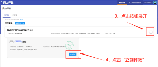 1、进入教务平台(http://jwxt.cs-ch.com)点击“评教”菜单,并进入“我的评教”即可进行问卷填写。配图如下:
