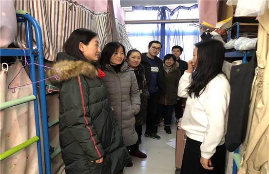 在进行安全检查之前,杨小丽在三舍辅导员值班室召开寒假前学生工作安全会议,安排宿舍安全检查工作,要求全体专兼职辅导员遵循全方位、无死角的原则,重点检查违规存放和使用电器、无人宿舍内的插排是否断电、楼内消防措施和应急通道是否存在安全隐患等问题。此次检查采用不同年级联查、互查、突击检查的形式,每个年级还进行自查,检查覆盖学院每一间学生宿舍。在检查过程中,老师们与尚未离校的学生进行亲切交流,了解每位在校学生的离返校时间,提醒学生注意人身和财产安全。对部分脏乱宿舍进行现场教育和安全知识宣传,叮嘱晚离校学生加强安全防范意识,严格遵守宿舍管理规定,营造安全、健康的宿舍环境。