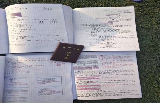 俗话说,好记性不如烂笔头。整理笔记的过程也是梳理和巩固知识的过程,大三年级广播电视学专业的田子然同学从中学起就养成了认真做好课堂笔记的好习惯。她的笔记重点突出,条理清晰,字迹娟秀。这一次她也毫不犹豫报名参加了“最美笔记”的评选,“记笔记可以让自己在课堂上更加专心,课后整理一遍的过程也是巩固一遍的过程。结课后看着条理脉络清晰的一本笔记,期末复习效率会非常高,也很有成就感。”