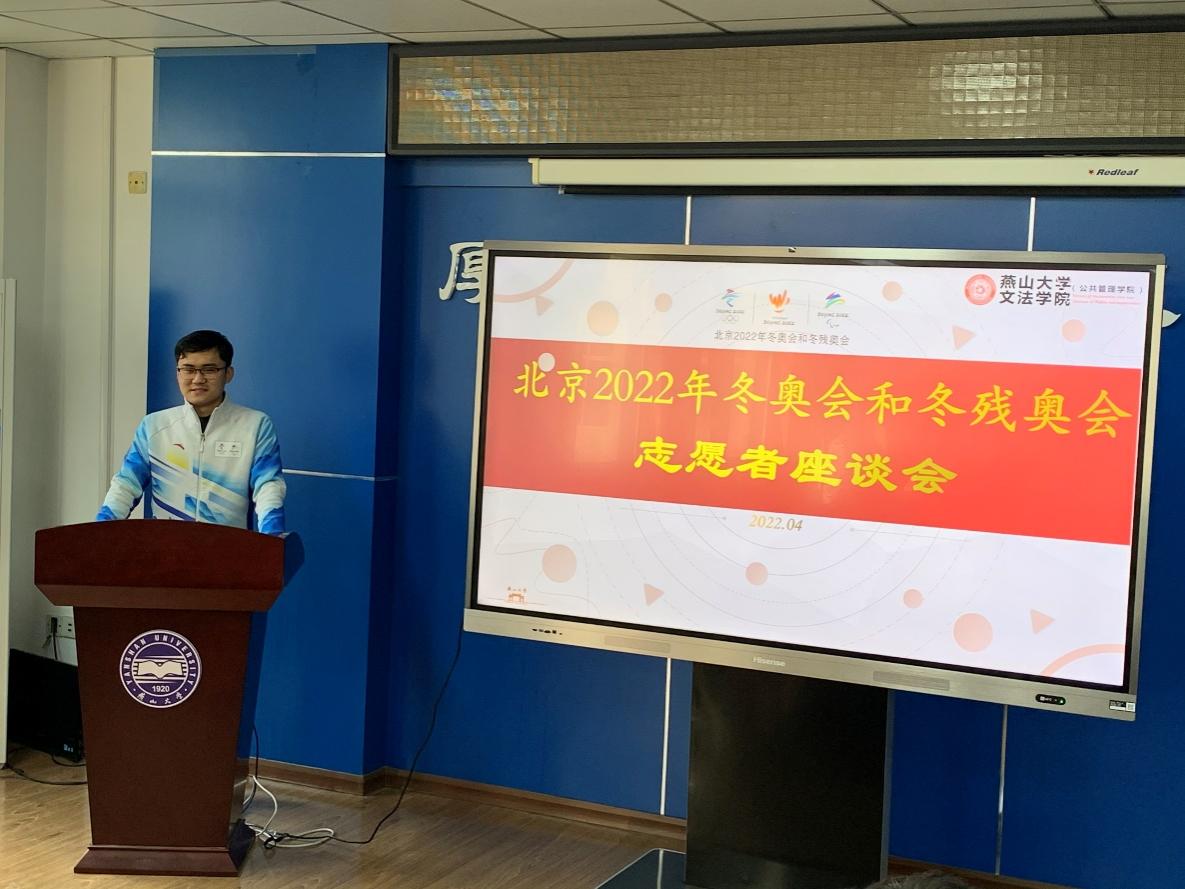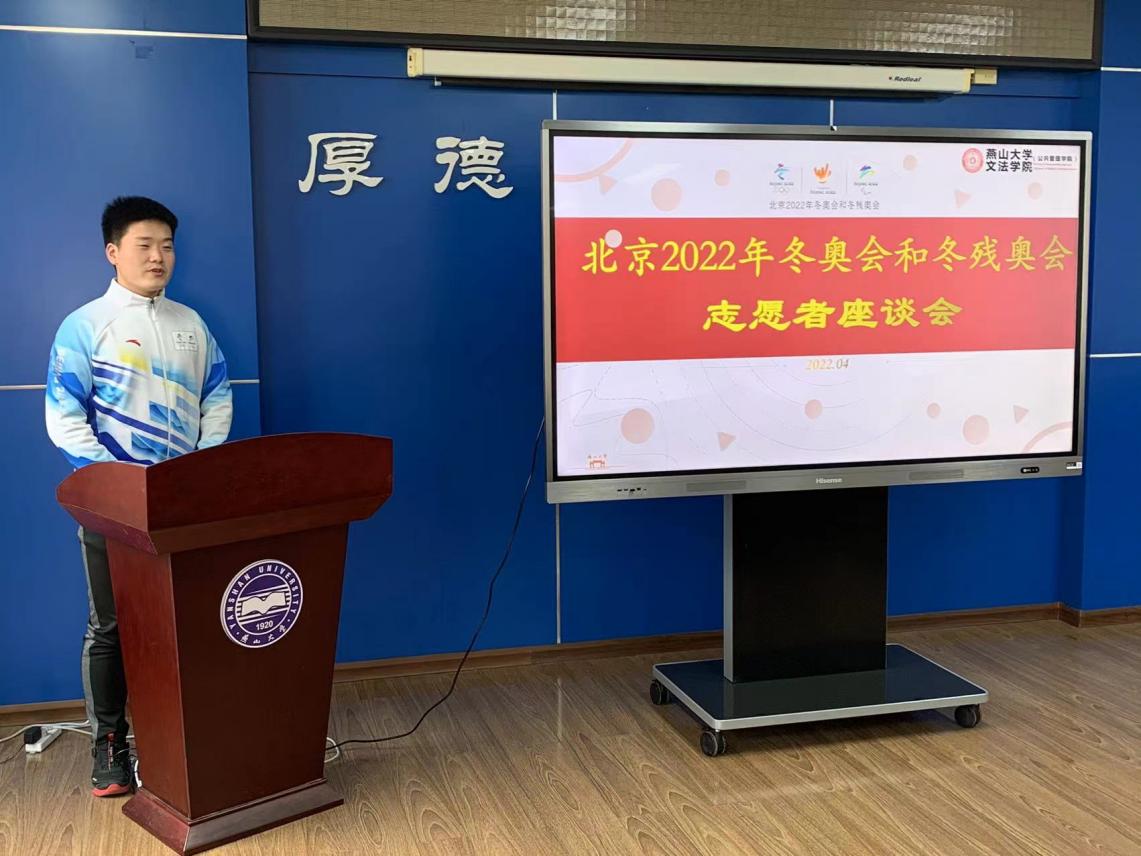 为深入学习贯彻习近平总书记在北京冬奥会、冬残奥会总结表彰大会上的重要讲话精神,弘扬胸怀大局、自信开放、迎难而上、追求卓越、共创未来的北京冬奥精神,文法学院(公共管理学院)于4月14日在人文馆224召开了冬奥会、冬残奥会志愿者座谈会,会议由教师志愿者王奕骅主持,院党委副书记杨小丽、学生辅导员姜一凡及文法学院志愿者代表出席了活动。