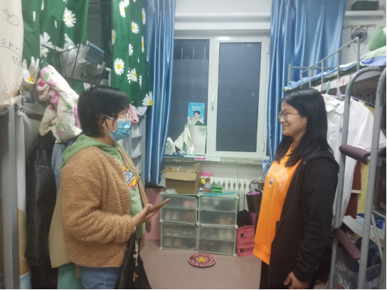 在进行安全隐患排查的同时,辅导员老师关心了解学生思想动态和学习生活情况,再次强调了疫情防控的重要性,叮嘱同学们一定要做好自我防护,按时作息、确保充足睡眠,养成良好的卫生习惯,保持良好心态。