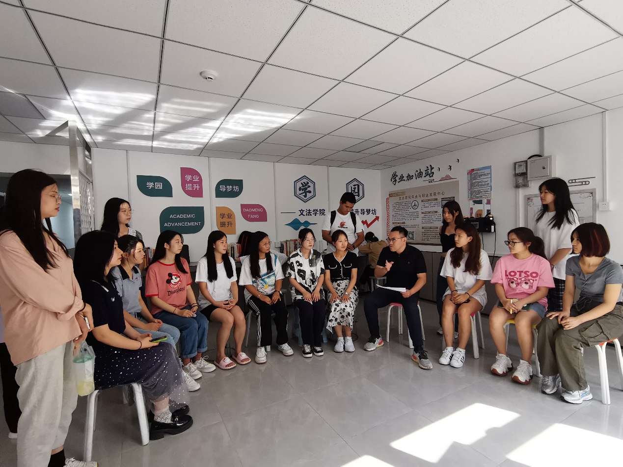 9月8日下午,文法学院思政到我家系列活动之燕鸣有约——“学霸”学习经验交流活动在东校区一舍如期举办,2021级本科各专业学习成绩优异的同学就学习收获、参与科创比赛的心得和经验进行了现场交流,辅导员王奕骅老师主持了活动。