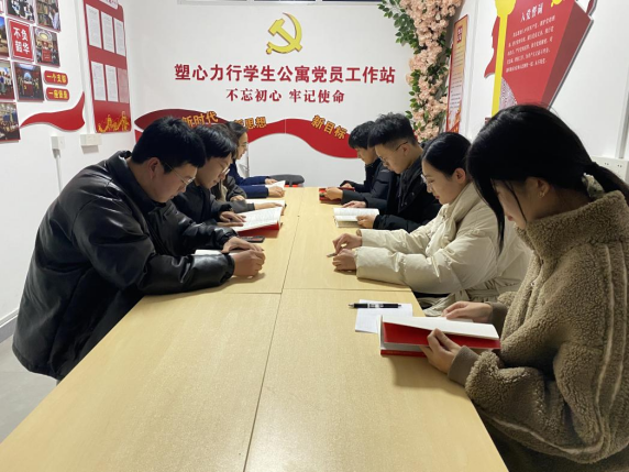 为践行习近平总书记对青年的殷切嘱托,提高学团工作者的政治素质和理论水平,12月3日下午,文法学院(公共管理学院)团委书记曹婷婷、团委副书记马双和学院学生会、研究生会主席团成员在东校区塑心力行学生公寓党员工作站开展了读书分享交流活动。