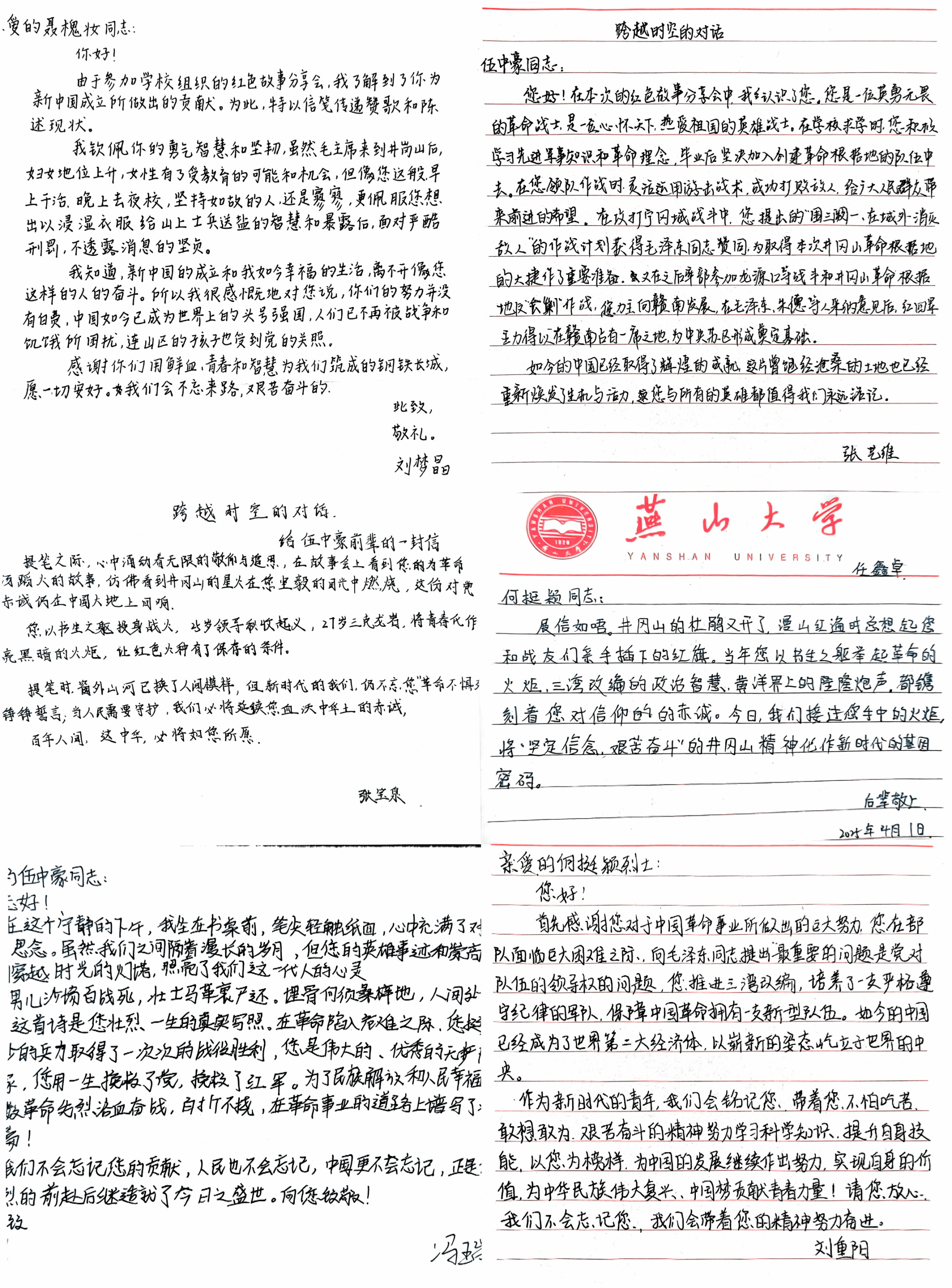 学生与先烈对话部分信件
